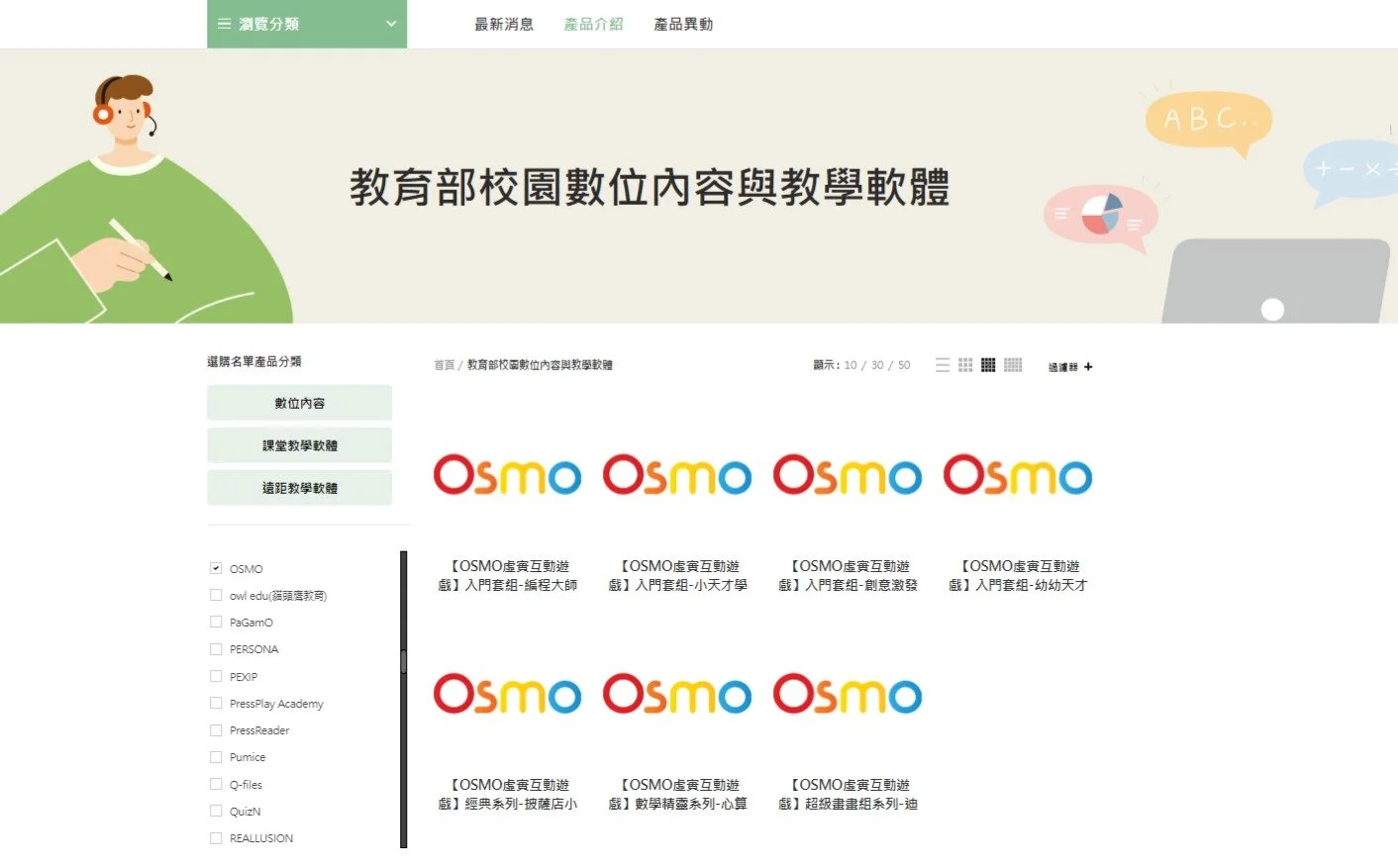 111年「教育部校園數位內容與教學軟體」產品公開徵求,經教育部審查OSMO AR虛實互動軟體通過納入選購名單,共有119家廠商,計有160家廠牌、702項產品。